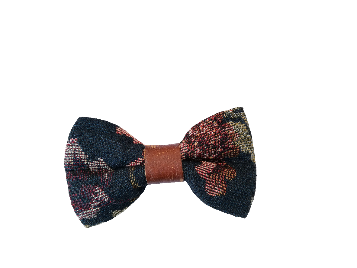 The polka.dot.coco brocade bow tie is finished off with a leather touch.