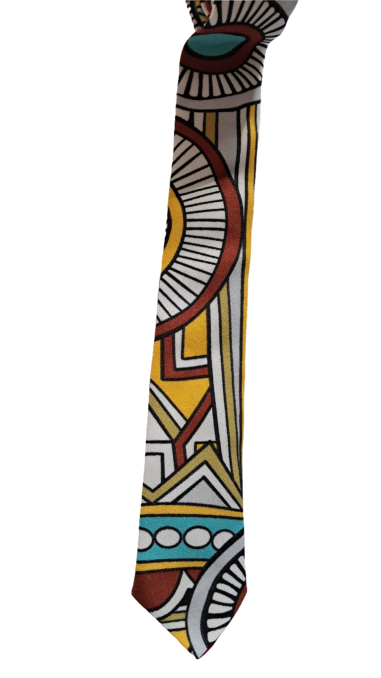 This Village Art Tie features intricate artwork in warm brown tones, perfect for adding a touch of creativity and sophistication to any outfit. Stand out and make a statement with this unique necktie. Elevate your style and show off your personality with the Village Art Tie!